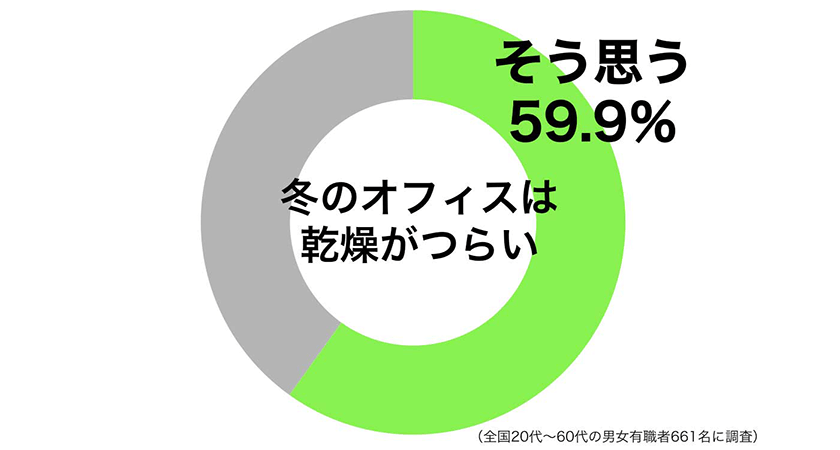 冬のオフィスは乾燥がつらい、と感じている人は59.9%もいるんです。